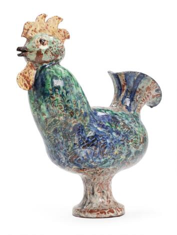2551/1000AarhusSvend Petersen: An earthenware hen, decorated with polychrome colours. Unsigned. H. 42. L. 40 cm.