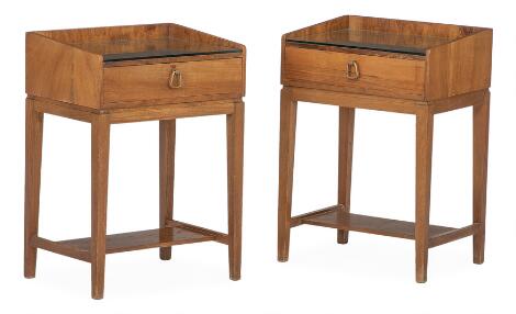 2551/1017LyngbyPeter Hvidt & Orla Mølgaard-Nielsen: A pair of walnut bedside tables. Manufactured at Søborg Møbelfabrik. H. 57. W. 40. D. 30 cm. (2)