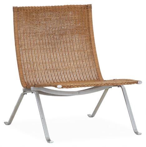2551/1020LyngbyPoul Kjærholm: "PK 22". Steel easy chair, seat and back with patinated woven cane.