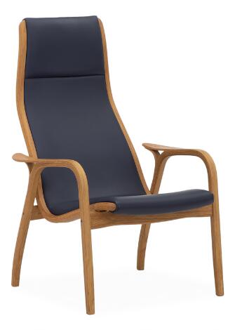 2551/1011LyngbyYngve Ekström: "Lamino". Oak easy chair. Seat and back upholstered with blue leather.