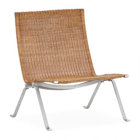2551/1019LyngbyPoul Kjærholm: "PK 22". Steel easy chair, seat and back with patinated woven cane.