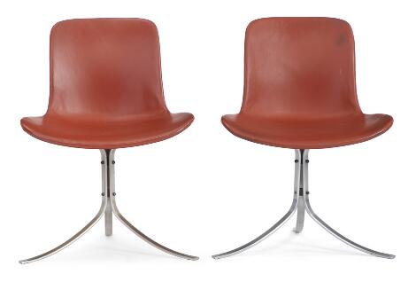 2551/1001LyngbyPoul Kjærholm: "PK 9". A pair of steel chairs. Seat and back upholstered with red leather. (2)