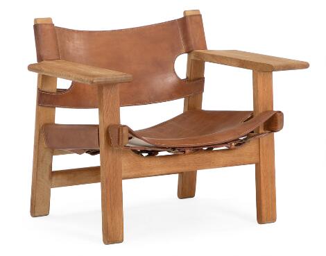 2551/1002LyngbyBørge Mogensen: "The Spanish Chair". Oak easy chair. Seat and back with patinated full grain leather.