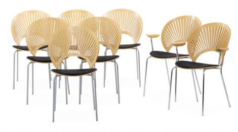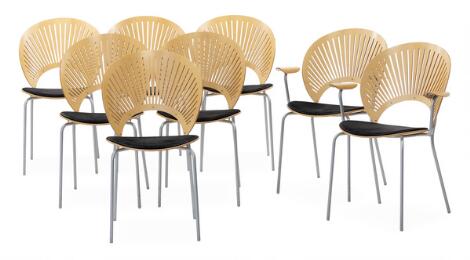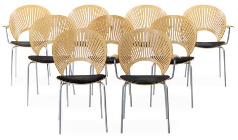 2551/991LyngbyNanna Ditzel: "Trinidad". Nine steel frame chairs. Maple wood seat and back. (9)