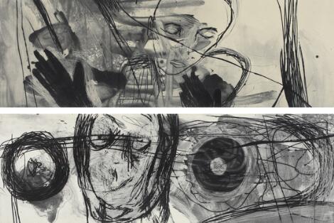 2551/1036AarhusErik A. Frandsen: Untitled, two compositions. Signed Erik A. Frandsen 88, 8/10. Two etchings. Visible size 60 x 99 cm. (2)