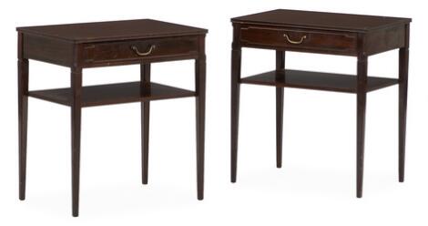 2551/1007LyngbyDanish furniture design: A pair of mahogany side tables. Front with drawer. H. 55 cm. W. 50 cm. D. 35 cm. (2)