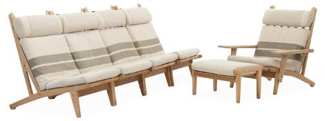2551/1016LyngbyHans J. Wegner: "GE 375". Oak living room, consisting of five sofa modules and a stool. (6)
