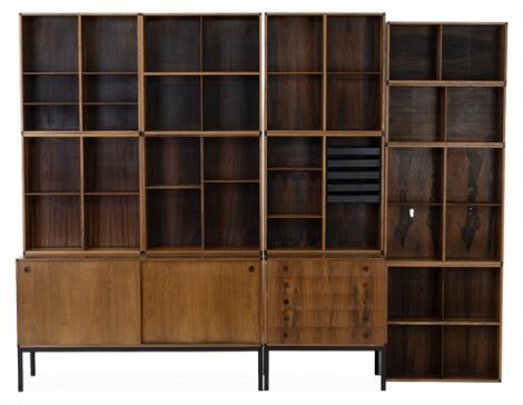 2551/1010LyngbyHans Hove and Palle Pedersen: Rosewood wall unit, consisting of sideboard, chest of drawers, and ten bookcases. (12)
