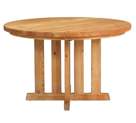 2551/1046AarhusScandinavian furniture design: A circular solid pine dining table with extension and two extra leaves. 1970s. H. 73. Diam. 119. L. 218 cm. (3)
