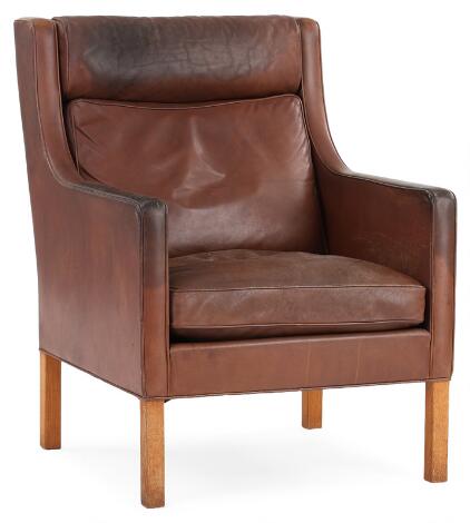 2551/1027LyngbyBørge Mogensen: Easy chair with oak legs. Upholstered with brown, coloured leather.