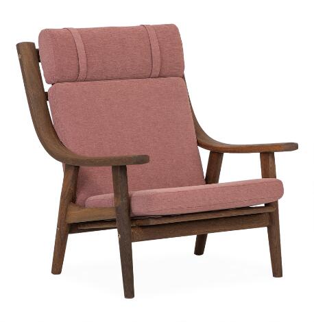 2551/1014LyngbyHans J. Wegner: "GE 530". Stained oak easy chair. Newer cushions upholstered with rosa fabric.