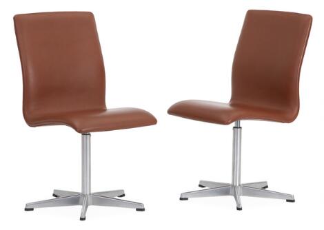 2551/1022Lyngby"Oxford". A pair of swivel chairs with aluminium base. Seat and back upholstered with brown, coloured leather. (2)