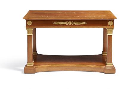 2551/3073LyngbyA French Empire style mahogany and gilt bronze mounted centertable. C. 1900. H. 78 cm. W. 129 cm. D. 66 cm.