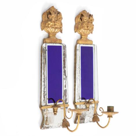 2551/3074LyngbyA pair of Louis XVI bracket mirrors with blue glass center pieces. Late 18th century.
