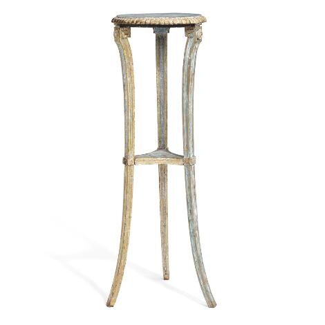 2551/3091LyngbyA Swedish pedestal of painted wood, round plate on a straight base. Partly late 18th century. H. 118 cm. Diam. 45 cm.