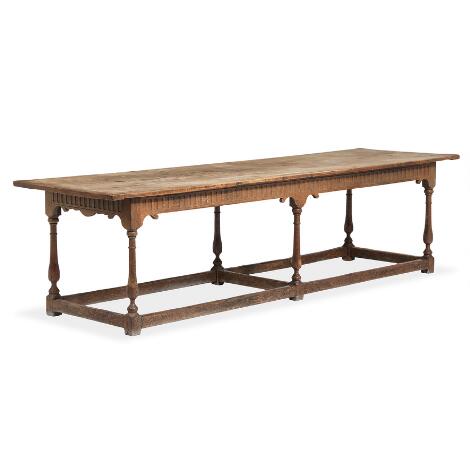 2551/3080LyngbyA large refectory table of oak, baluster shaped legs joined by foot lists. Second half of the 19th century. H. 74 cm. L. 283 cm. W. 82 cm.
