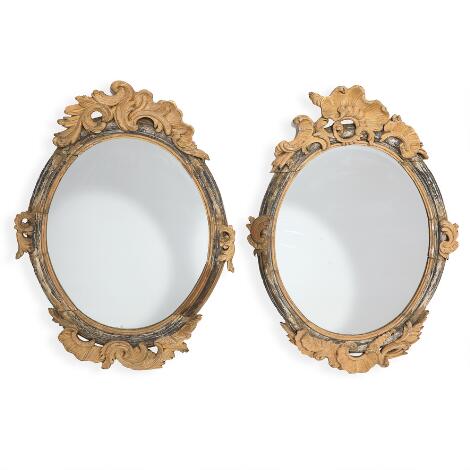 2551/3063LyngbyA pai of large Italian oval mirrors, painted and gilded wood. Rococo style, late 19th century. H. 105 cm. W. 77 cm. (2)