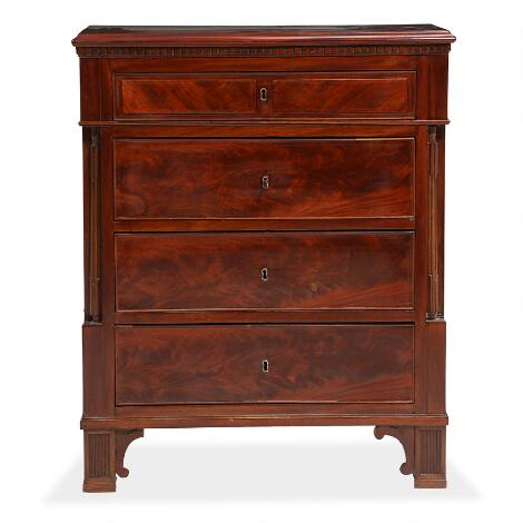 2551/3069LyngbyDanish Louis XVI chest of drawers of mahogany. Copenhagen, late 18th century. H. 87 cm. W. 71 cm. D. 43 cm.