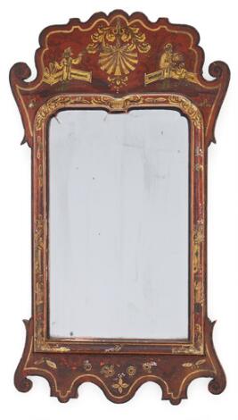 2551/3072LyngbyAn English George II mirror, red-painted with gilt chinoiserie. Mid-18th century. H. 100 cm. W. 55 cm.