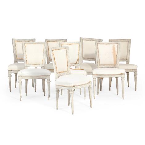 2551/3092LyngbyA set of eight almost identical Gustavian chairs. LSH for Lars Söderholm, chairmaker in Stockholm circa 1785. (8)