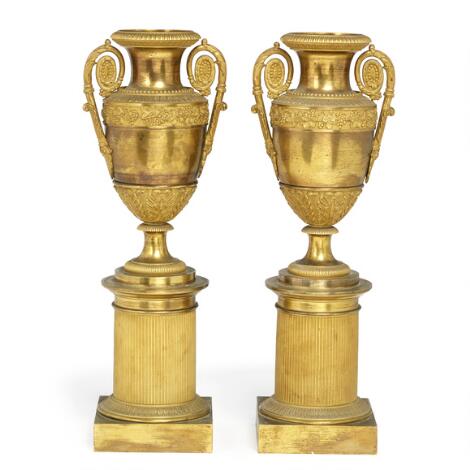 2551/3121LyngbyA pair of French Empire gilt bronze vases. Paris, early 19th century. H. 39 cm. (2)