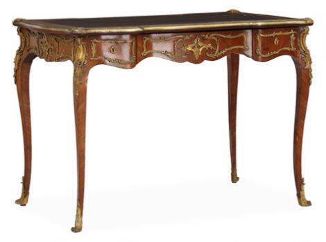 2551/3120LyngbyA French ladies' desk of rosewood with gild bronze mounting. Rococo style, late 19th century. H. 75 cm. W. 107 cm. D. 65 cm.