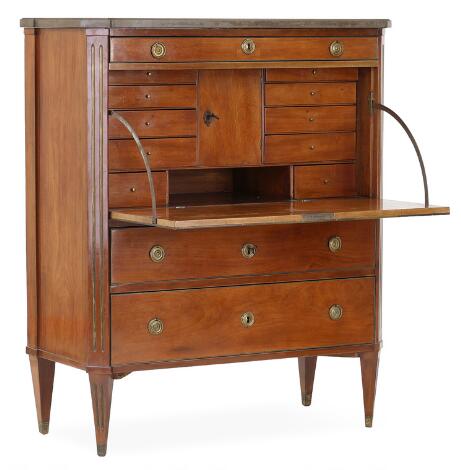 2551/3077LyngbyA Gustavian mahogany and brass lined secretary. Sweden, late 18th century. H. 133 cm. W. 111 cm. D. 53 cm.