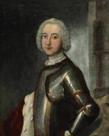2545/8035Carl Gustaf Pilo, skole 18. årh.: Portræt af Kong Frederik V af Danmark. Usigneret. Olie på lærred. 115 x 86.
