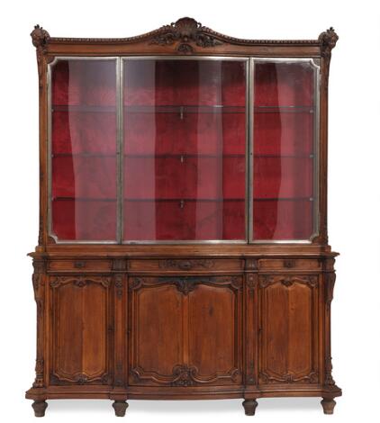 A large French or Belgian display cabinet of polished oak. Second half of the 19th century. H. 270 cm. W. 200 cm.