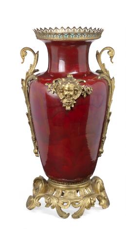 A large French Rococo style baluster ox-blood glazed porcelain vase gilt bronze mountings. Late 19th century. H. 72 cm.