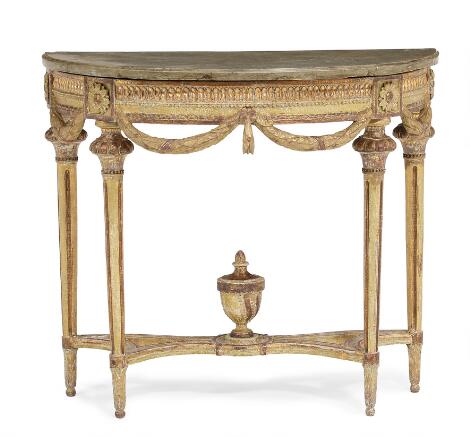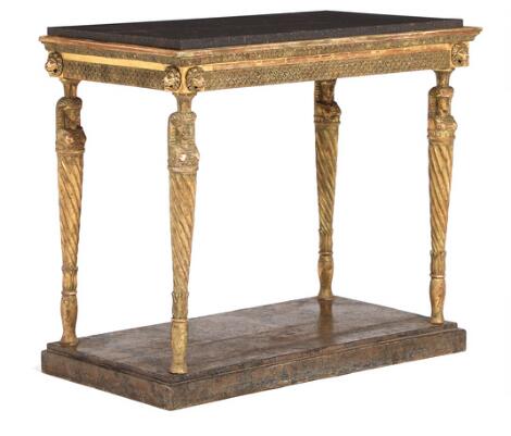 Gustaviansk konsol af forgyldt træ med plade af Öland sten. Stockholm, 18. årh.s slutning. H. 80. B. 91. D. 48.