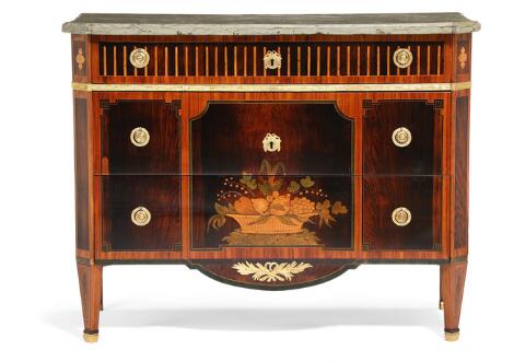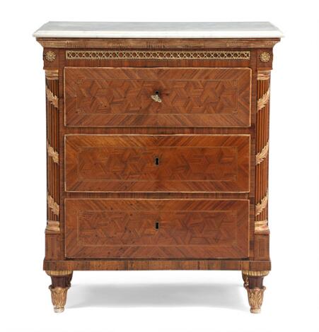 Dansk Louis XVI kommode. Antagelig efter tegning af C. F. Harsdorff eller N. H. Jardin. 18. årh.s slutning. H. 81. B. 67. D. 38.