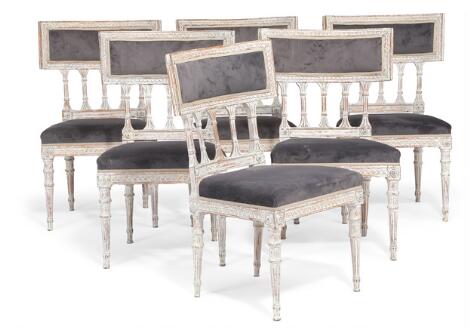 Ephraim Ståhl, model efter: Et sæt på seks sengustavianske stole af bemalet træ. Stockholm, 18. årh.s slutning. (6)