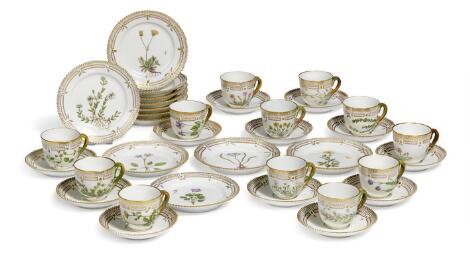 "Flora Danica" 12 par mokkakopper samt 12 kagetallerkener af porcelæn. Royal Copenhagen. (24)