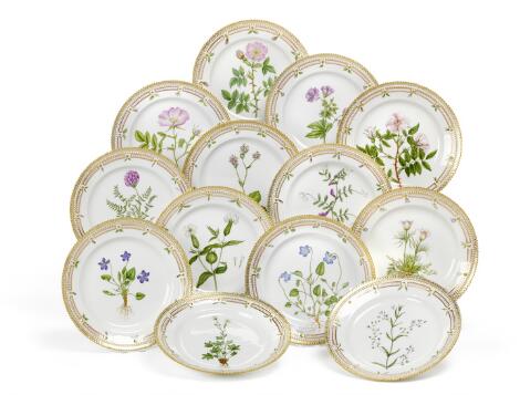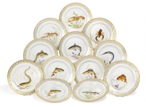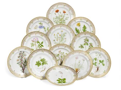"Flora Danica" 13 frokosttallerkener af porcelæn. 3550. Royal Copenhagen. Diam. 22 cm. (13)