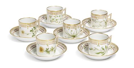 "Flora Danica" seks par chokoladekopper af porcelæn. 3512 og 3513. Royal Copenhagen. (6)