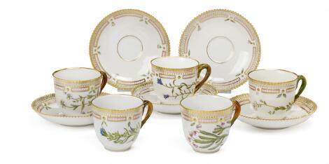 "Flora Danica" fem par kaffekopper af porcelæn. 3597. Royal Copenhagen. (5)