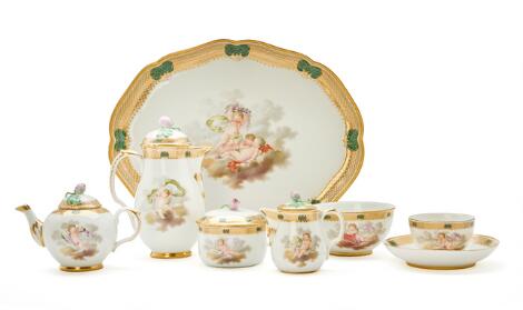 Solitaire dejeuner sæt af porcelæn, dekoreret i farver og guld. Den Kongelige Porcelainsfabrik ca. 1780-1785 (7)