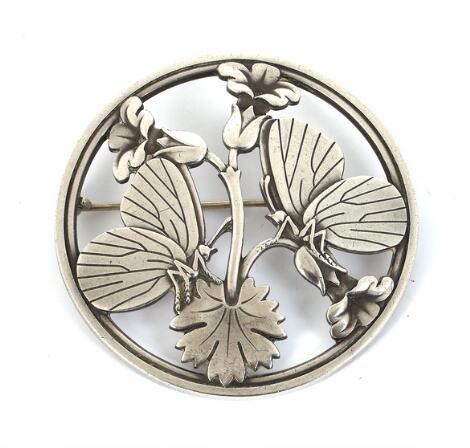 2546/1535Arno Malinowski: Broche af sterlingsølv i form af insekter og blomster. Dessin 283. Diam. 5,5 cm. 1933-44.