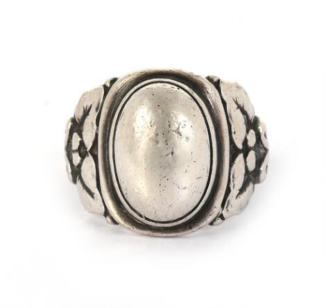2546/1531Georg Jensen: Ring af sterlingsølv prydet med stiliseret bladværk. Dessin 59. B. 16 mm. Str. 53. Georg Jensen 1933-44.