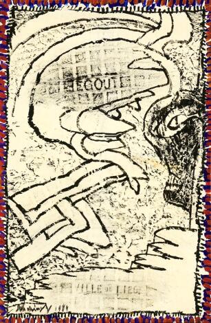930/52LyngbyPierre Alechinsky: "Brisure", Liège. Signeret Alechinsky 1984; signeret på bagsiden med titel og datering. Akryl på papir monteret på lærred. 98 x 64 cm.