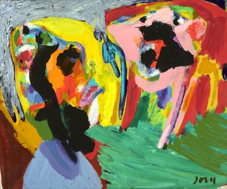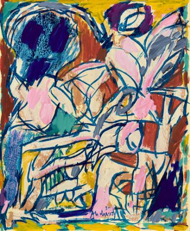 930/66LyngbyKarel Appel: Uden titel, 1980erne. Signeret Appel. Olie på papir monteret på lærred. 90 x 60 cm.