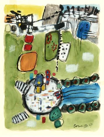 930/50LyngbyCorneille: Uden titel, 1967. Signeret Corneille 67. Akvarel, gouache og tusch på papir. Lysmål 35 x 27 cm.