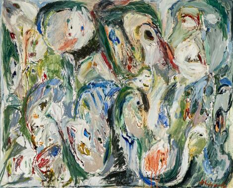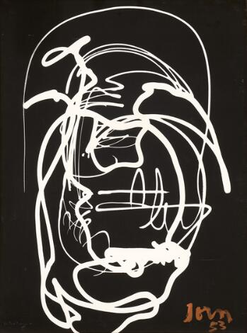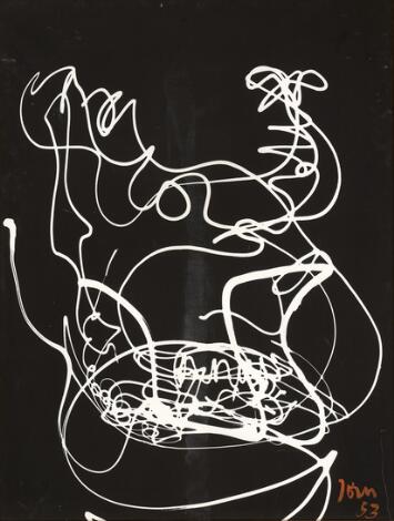 930/64LyngbyAsger Jorn: Uden titel, 1953. Signeret Jorn. Tempera på malerplade monteret på masonit. 100 x 138 cm.