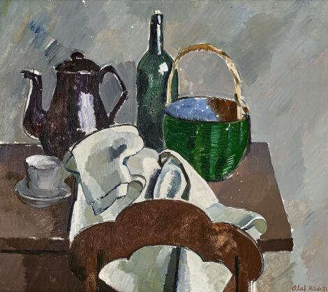 930/3LyngbyOlaf Rude: Opstilling, 1921. Signeret Olaf Rude 21. Olie på lærred. 80 x 90 cm.