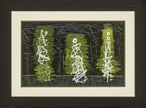 930/69LyngbyAsger Jorn: Uden titel, 1972. Signeret Asger J. 72 med dedikation til Nanna (Jorn). Akryl på papir. Bladstørrelse 25 x 26 cm.