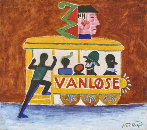 930/42LyngbyHenry Heerup: Sporvogn, Vanløse. Signeret Heerup. Olie på lærred. 84 x 95 cm.