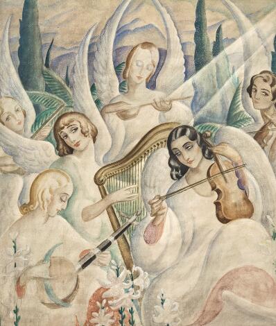 930/17LyngbyGerda Wegener: "Le Concert de Bach", ca. 1936. Usigneret. Akvarel på papir. Lysmål 62 x 52 cm.