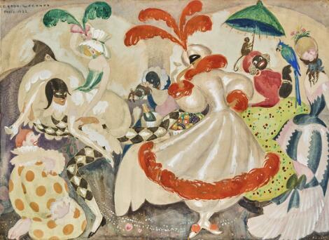 930/15LyngbyGerda Wegener: Maskerade. Signeret Gerda Wegener, Paris 1922. Gouache, tusch og akvarel på papir. Lysmål 55 x 76 cm.