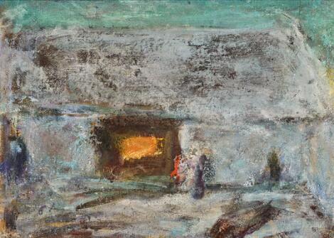 930/5LyngbyJais Nielsen: "Julenat", 1914. Signeret Jais 14. Olie på tyndt papir monteret på karton. 65 x 55 cm.